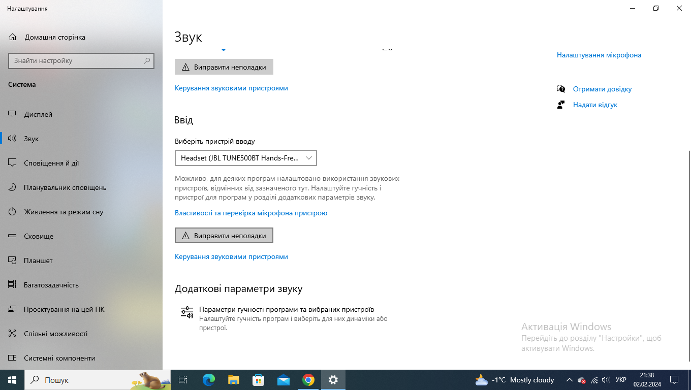 Какой статус возле наушников в параметрах Bluetooth? Прикрепите скриншот окна «Звук».