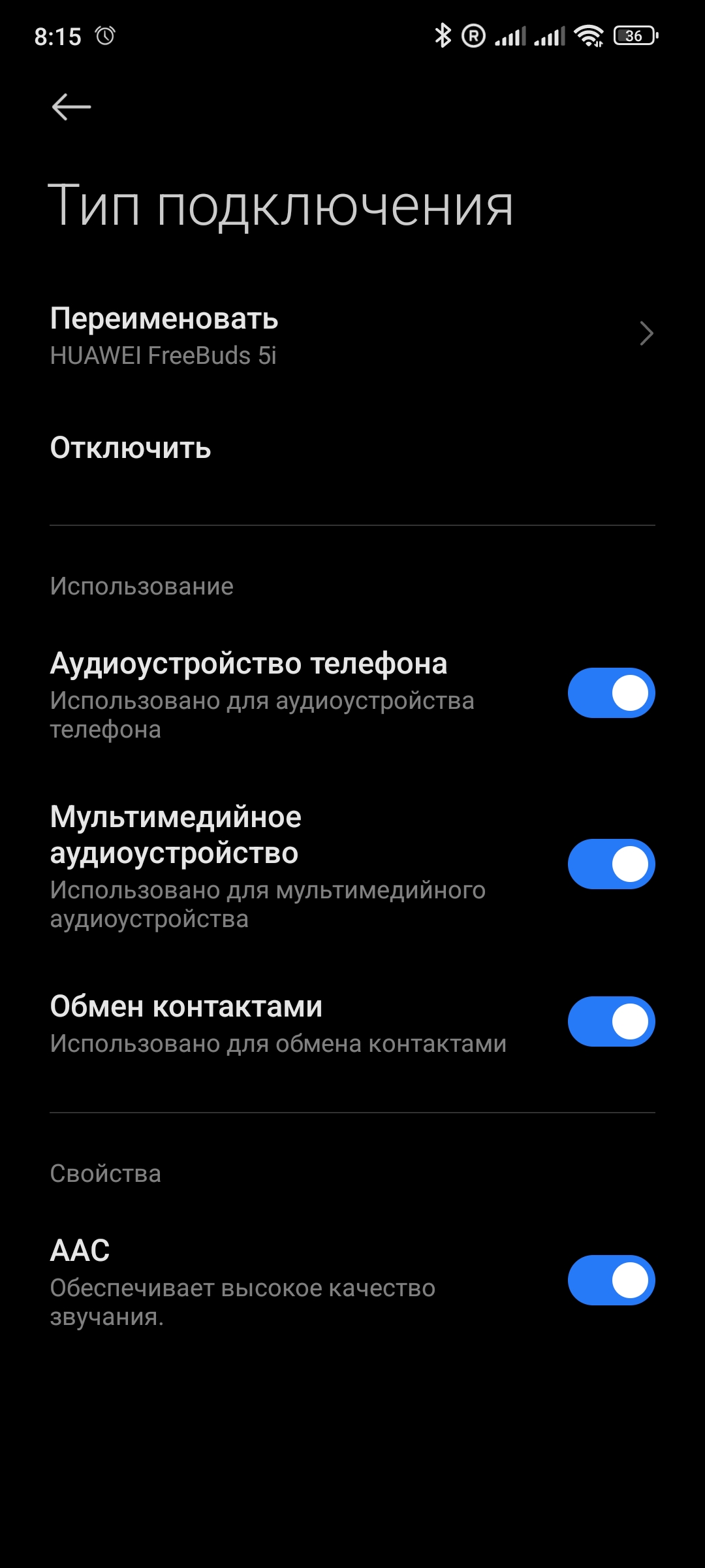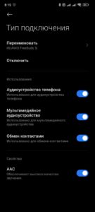 Возле наушников написано «Подключено для вызовов…»? Проверьте, включена ли в свойствах наушников служба «Аудиоустройство телефона» (Профиль HSP/HFP, Звонки, Вызовы).