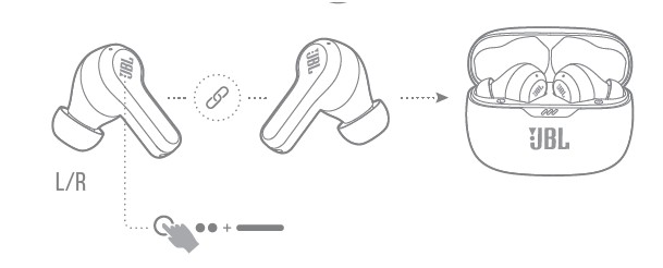 На JBL Tune 115 TWS, чтобы связать правый и левый наушник (синхронизировать их), нужно достать оба наушника и сделать три быстрых и одновременных нажатия на правом и левом наушнике.
