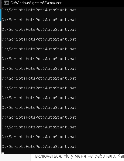 Сергей здравствуйте! Вручную запускается, когда пытаюсь запустить AutoStart.bat запускается командная строка и побежали строки, хот-спот не стартует. Три раза все перепроверял.