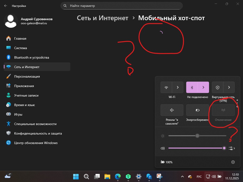 Мобильный хот-спот в Windows 11 перестал работать около месяца назад завис в положении отключение, в службу поддержки Microsoft не дает написать висит окошко «Настройка ключа доступа…» (скрин во вложении) Как быть в данной ситуации??? Сейчас мобильный интернет не работает, нужна точка доступа. В данном положении кнопка выключения хот-спот висит уже месяц +- нигде нет решения или патча как это исправить, и обратиться в службу поддержки нельзя нет контактов нигде. До этого хот спот работал не стабильно приходилось постоянно включать выключать. Скриншот программы Virtual Router c надписью» Группа или ресурс находятся не в нужном состоянии для выполнения данной операции» стандартные средства сделать не дают… Есть фотография. Получилось оставить только отзыв в Микрософт aka.ms/AAyzr0s это ссылка на него, ответа пока нет… Виндовс лецинзионный…