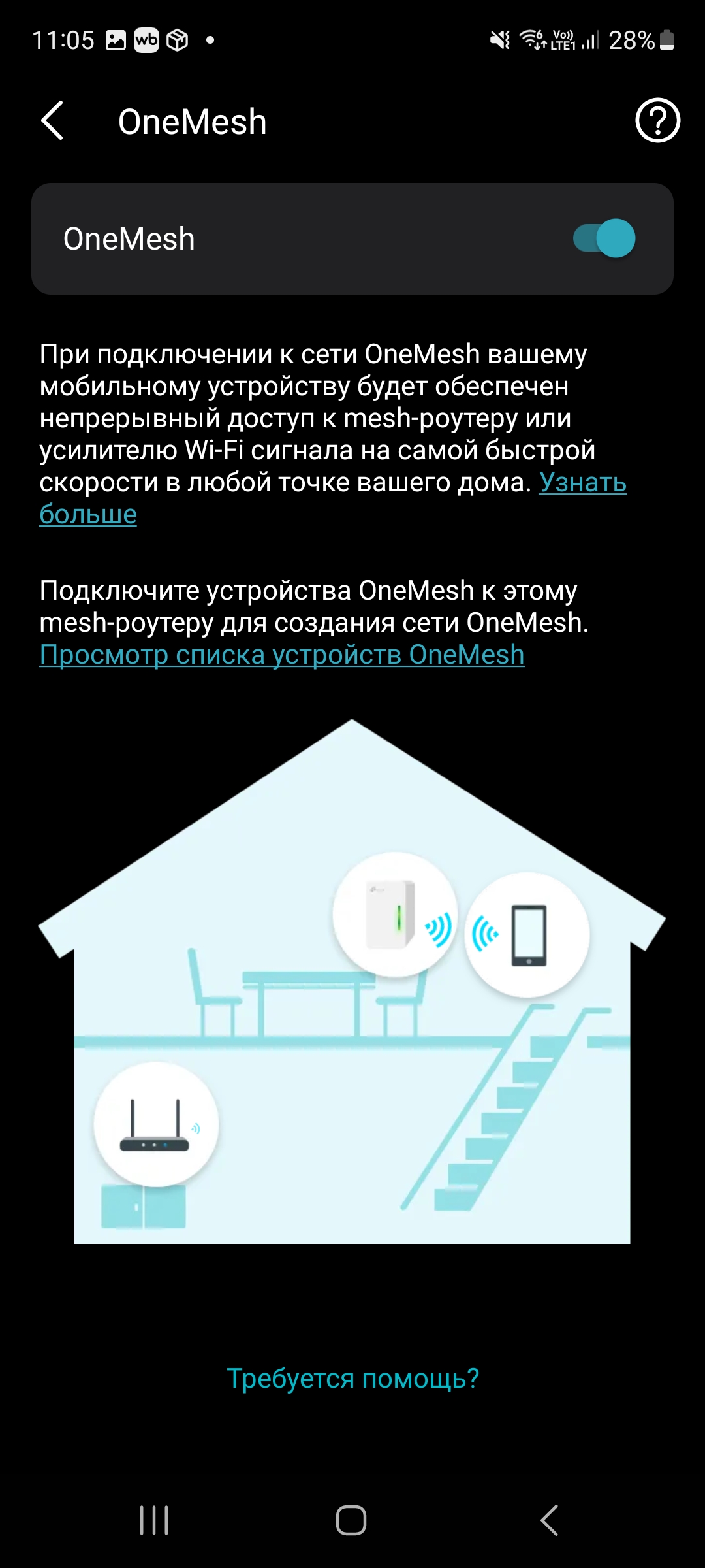 Очень подробно об этой технологии я рассказывал в статье что такое OneMesh от TP-Link. Там же показывал процесс настройки на примере роутера и усилителя Wi-Fi сигнала.