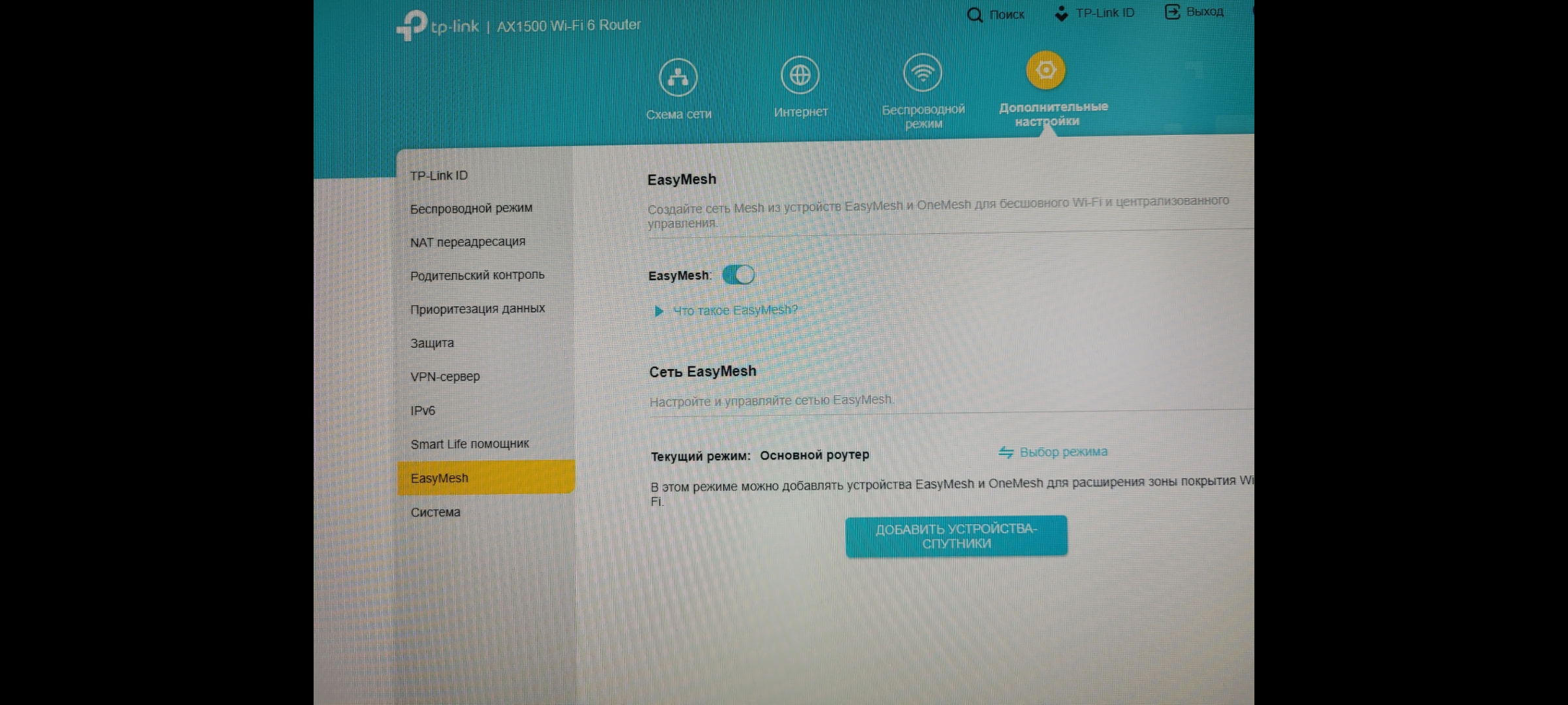 Так выглядят настройки OneMesh на роутере TP-Link: