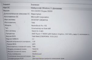 Ноут xiaomi redmi book 15 pro. Адаптер Realtek 8852AE.