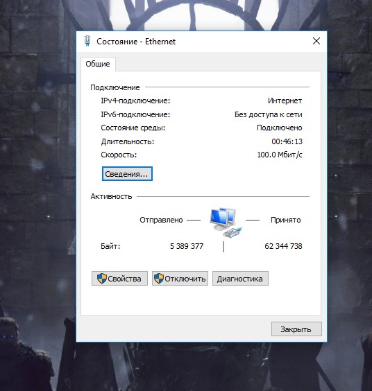 На скриншоте открыто «Состояние» подключения Ethernet (по кабелю). При чем здесь беспроводная сеть?