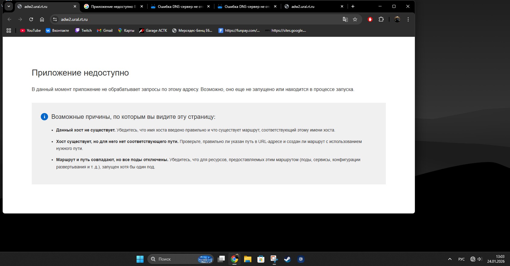 Добрый день. Такая же проблема, как у Юлии. Всё перепробовал, в том числе сброс DNS. Снова появляется такая же проблема