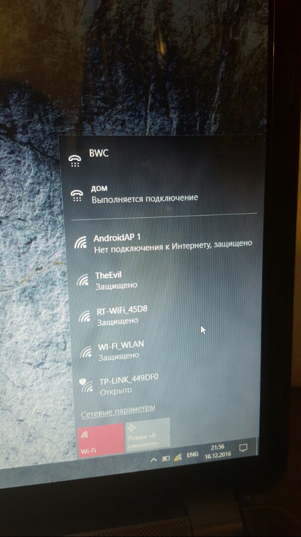 У меня другие устройства (смартфоны, телевизор) работают от wi-fi, а ноутбук периодически пишет нет доступа, причем сеть видит и пишет что подключено ( видно на фото, самая верхняя сеть моя). Отключаю вручную, и опять подключаю. Бывает начинает работать, но бывает что нет. Может просто постоять некоторое время и страница сама загрузится. Купили новый роутер, не помогло. Через кабель работает. Что может быть.? У меня кстати с недавнего времени windows10, точно не могу вспомнить, но по моему с момента обновления с 8 на 10 эта беда и началась. Раньше 1,5 года все работало исправно. Подскажите что делать пожалуйста