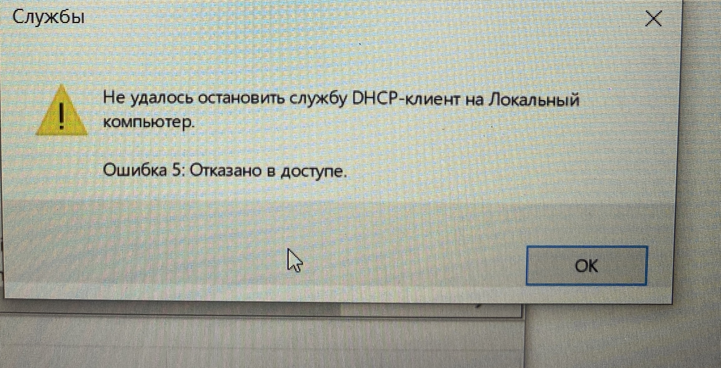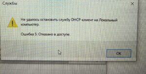 Добрый день! А что можно сделать, если при попытке перезапуска DHCP-клиента выскакивает уведомление «Не удалось остановить службу DHCP-клиент на Локальный компьютер. Ошибка 5: отказано в доступе»