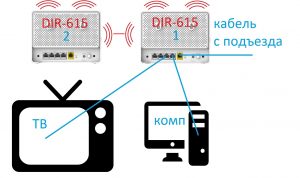 Добрый вечер, хочу объединить 2 роутера в доме, соединенных кабелем. Физическая схема такая: к первому роутеру подключается интернет, из него идет кабель к второму роутеру и к 2м компьютерам. Второй роутер нужен для расширения зоны wi-fi, а также для подключения по кабелю телевизора. Возможна ли такая схема? Роутеры еще не куплены, какую фирму посоветуете?