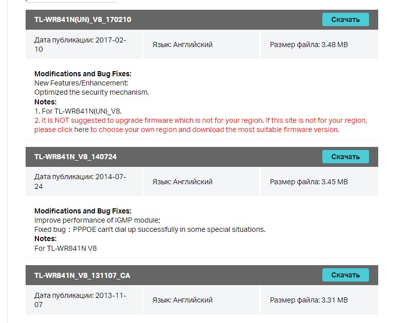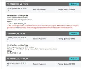 • Скачаем с официального сайта прошивку для нашей модели (TL-WR841N, или TL-WR841ND) и аппаратной версии.