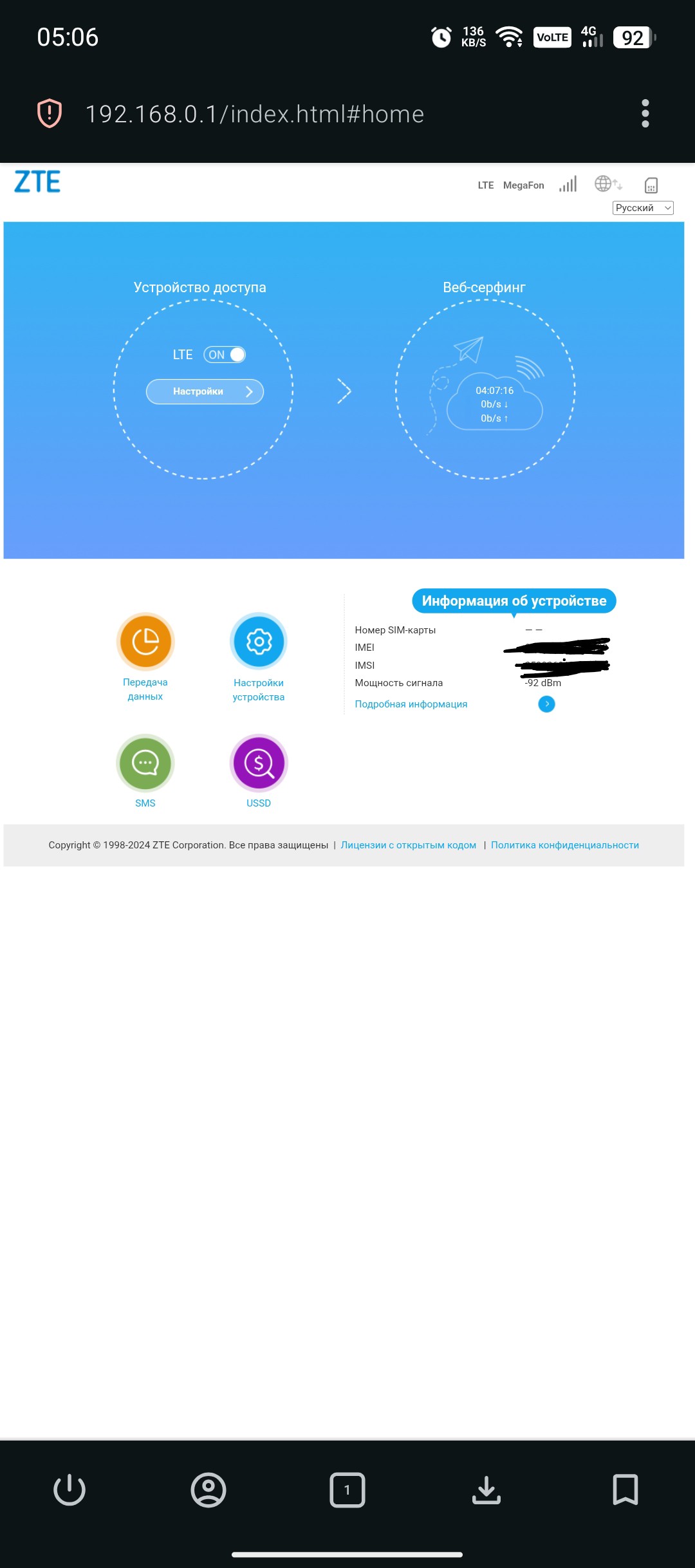 У меня zte mf79u, а не 92. И нет компьютера. Сейчас попробую сбросить ещё раз. Спасибо за помощь.