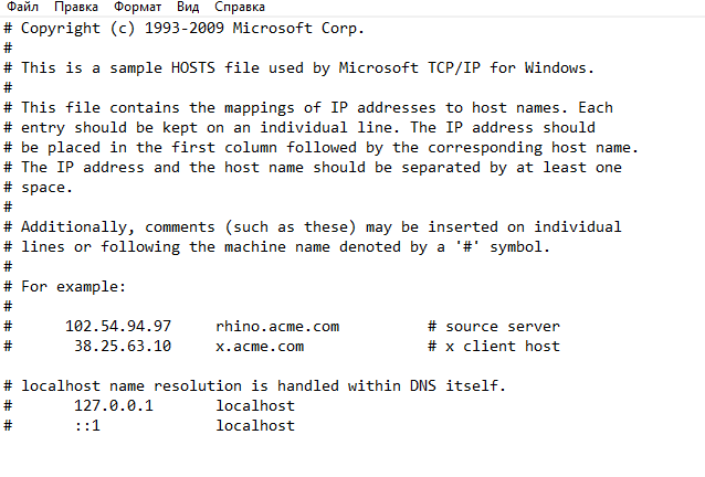 Нормальный файл host должен выглядеть так как я указал на скриншоте.